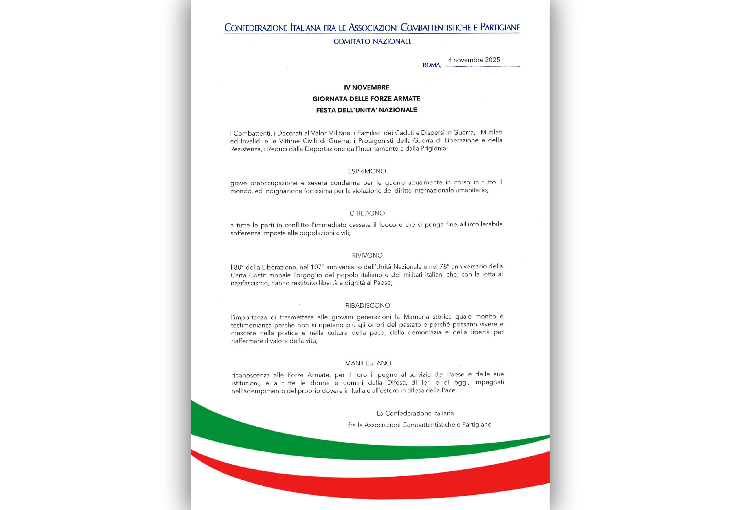GIORNATA DELLE FORZE ARMATE – FESTA DELL’UNITA’ NAZIONALE I Combattenti, i Decorati al Valor Militare, i Familiari dei Caduti e Dispersi in Guerra, i Mutilati […]